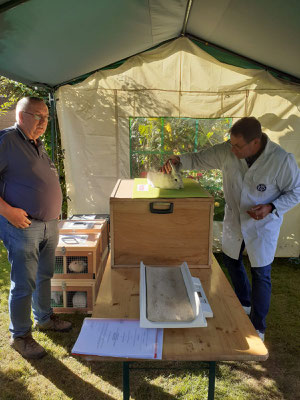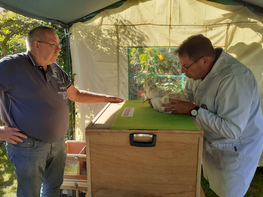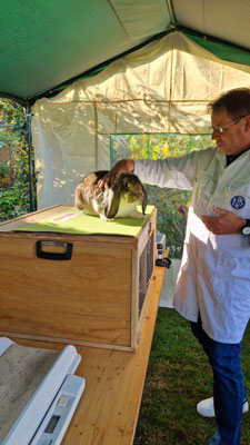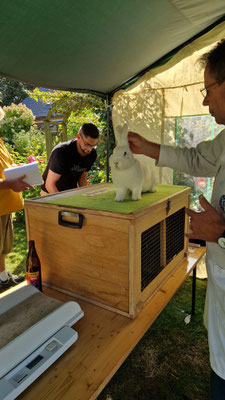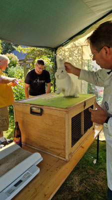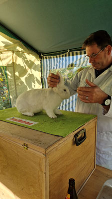 beachtlichen 385,5 Punkten. Er stellte in seiner Zuchtgruppe Satin-Elfenbein RA auch die Siegerhäsin mit 97,0 Punkten.