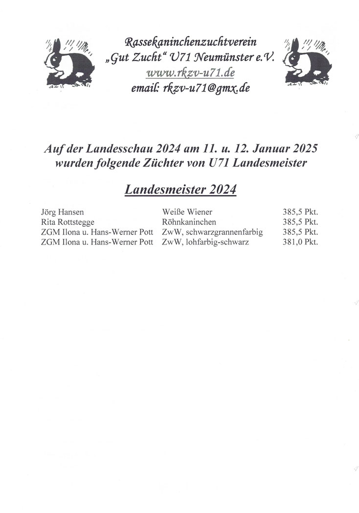 Auf der Landesschau am 5. und 6. Januar 2019 wurden folgende Züchter Landesmeister